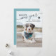 Em vez de Cartões de Natal Atrasados, Envie um Cartão de Feliz ano novo com uma Foto do Cão de Pet e a formulação "Woofy New Year" com uma pata impressa no script de vintage retrorativo e nos estilos de fonte da máquina de escrever. Basta carregar sua foto e personalizar seus nomes para um cartão de cartões de natal de excelente.