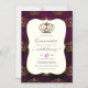 Convite real para quinceanera de ouro com tipografia elegante personalizável para suas especificidades de evento.