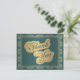 Este design tem uma arte de tipografia "obrigado" em dourado, com um fundo azulado. Uma moldura com padrão vintage está na parte de trás e na frente do cartão, em cor dourada. Na parte de trás do design, você pode adicionar sua mensagem personalizada e nome(s). Este cartão de agradecimento pode ser usado para ocasiões como casamentos (principalmente), chás de bebê ou até mesmo para festas de aniversário. Considere usar a ferramenta de Design para edição do estilo de fonte, incluindo tamanho da fonte, estilo de fonte e personalização de cor. Visite nossas Coleções para designs de cartões de agradecimento semelhantes.