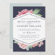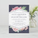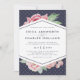 Os convites de casamento elegantes apresentam uma mistura chic de florais de aquarela vintage e elementos geométricos modernos em um fundo azul-da-meia-noite sutilmente padronizado. Um spray de flores cor-de-água cor-de-rosa pincelada espia do topo e do fundo de um elemento em forma de diamante central esboçado em azul-da-noite, segurando seus detalhes de casamento em letras limpas e modernas. Cartões invertidos para jade verde-acinzentada macia.