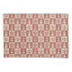 This classic checkerboard style tile faux encaustic pattern features fleur-de-lis motif (lily flower) in pale pink red and beige. As a heraldic symbol, the lily flower has a long history and was used on coats of arms, and as a floor tile pattern popular in the Middle Ages (especially in France and England) and during the Victorian Gothic Revival style.