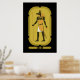 Poster com Deus Anubis de mumificação em design de cartouche de ouro. Essa divindade egípcia cabeça-chal também era conhecida como Inpu, Inpw, Jnpw ou Anpu no Egito antigo.
