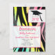 Uma classe do anúncio 2012 da graduação que caracteriza um fundo de néon do impressão da zebra na parte dianteira e na parte traseira. Características dianteiras "classe de 2012" textos com design do boné de formatura. Personalize com detalhes de sua ocasião.