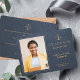 Marinho moderno elegante de couro azul e modelo de cartão de anúncio de licenciatura em Direito de cobre, com sua foto e texto personalizados. +++++++++ Fácil de personalizar em ambos os lados!