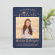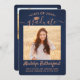 Compartilhe a alegria de um segundo grau ou formandos com estes anúncios de azul e cobre de marinho de 2 fotos personalizados. (DICA DE IMAGEM: Uma maneira fácil de centralizar uma imagem exatamente como você deseja é recortá-la antes de carregá-la no site do Zazzle.) Este modelo inclui o nome do formando, o ano de aula e a escola, e é simples de personalizar com qualquer texto de sua escolha, como detalhes do convite de festas, nomes de pais, honras especiais, título do grau, citação de inspiração favorita, informações de contato do formando, planos educacionais futuros ou nova posição de emprego. Se houver algum texto não desejado, simplesmente exclua-o. Design apresenta um fundo azul escuro ombre, boné falso foil mortar conselho, caligrafia manuscrita, tipografia moderna minimalista e duas fotos de sua escolha, como fotos de mais velho ou imagens da cerimônia de início. Observe que cobre é impresso a cores, não metal. Estas elegantes cartas de graduação são uma maneira moderna e chique de compartilhar sua celebração especial com a família e os amigos. Parabéns ao formando!