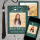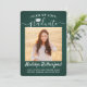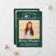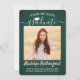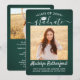 Compartilhe a alegria de uma formatura do ensino médio ou faculdade com esses convites personalizados com 2 fotos nas cores verde escuro, branco e prata. (DICA DE POSICIONAMENTO DA IMAGEM: Uma maneira fácil de centralizar uma imagem exatamente como você deseja é cortá-la antes de fazer o upload para o site da Zazzle.) Este modelo inclui o nome do formando, ano de formatura e escola, e é simples de personalizar com qualquer texto de sua escolha, como detalhes do convite da festa, nomes dos pais, honrarias especiais, título do diploma, citação inspiradora favorita, informações de contato do formando, planos de educação futura ou novo cargo. Se houver algum texto que não seja desejado, basta excluí-lo. O design apresenta um fundo ombre verde, um capelo com efeito de aço inoxidável escovado, caligrafia no estilo manuscrito, tipografia minimalista moderna e duas fotos de sua escolha, como fotos de formatura ou imagens da cerimônia de formatura. Por favor, note que a cor prata é impressa, não é folha metálica. Esses cartões de anúncio de formatura são uma maneira elegante e sofisticada de compartilhar a celebração do