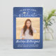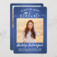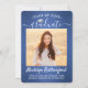 Compartilhe a alegria de um segundo grau ou formandos com estes anúncios personalizados de 2 fotos azuis, brancas e prateadas. (DICA DE IMAGEM: Uma maneira fácil de centralizar uma imagem exatamente como você deseja é recortá-la antes de carregá-la no site do Zazzle.) Este modelo inclui o nome do formando, o ano de aula e a escola, e é simples de personalizar com qualquer texto de sua escolha, como detalhes do convite de festas, nomes de pais, honras especiais, título do grau, citação de inspiração favorita, informações de contato do formando, planos educacionais futuros ou nova posição de emprego. Se houver algum texto não desejado, simplesmente exclua-o. Design apresenta um fundo azul-real escovado, boné de conselho de morteiro de folha falsa, caligrafia de script escrita à mão, tipografia moderna minimalista e duas fotos de sua escolha, como fotos de mais velho ou imagens da cerimônia inicial. Note que o fundo é impresso a cores e não em folhas metálicas. Estes cartões de anúncio elegantes de formatura são uma forma na moda para compartilhar sua celebração especial com a família e os amigos. Parabéns ao formando!