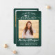 Compartilhe a alegria de um segundo grau ou formandos com estes anúncios personalizados de 2 fotos verde, branco e prata. (DICA DE IMAGEM: Uma maneira fácil de centralizar uma imagem exatamente como você deseja é recortá-la antes de carregá-la no site do Zazzle.) Este modelo inclui o nome do formando, o ano de aula e a escola, e é simples de personalizar com qualquer texto de sua escolha, como detalhes do convite de festas, nomes de pais, honras especiais, título do grau, citação de inspiração favorita, informações de contato do formando, planos educacionais futuros ou nova posição de emprego. Se houver algum texto não desejado, simplesmente exclua-o. Design apresenta um fundo verde-escuro piscado, boné de conselho de morteiro de folha falsa, caligrafia com script, tipografia moderna minimalista e duas fotos de sua escolha, como fotos de mais velho ou imagens da cerimônia de início. Note que o fundo é impresso a cores e não em folhas metálicas. Estes cartões de anúncio elegantes de formatura são uma forma na moda para compartilhar sua celebração especial com a família e os amigos. Parabéns ao formando!