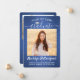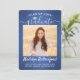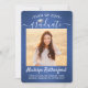 Compartilhe a alegria de uma formatura do ensino médio ou faculdade com esses convites personalizados em 2 fotos nas cores azul, branco e prata. (DICA DE POSICIONAMENTO DA IMAGEM: Uma maneira fácil de centralizar uma imagem exatamente como você deseja é cortá-la antes de fazer o upload para o site da Zazzle.) Este modelo inclui o nome do formando, ano de formatura e escola, e é simples de personalizar com qualquer texto de sua escolha, como detalhes do convite da festa, nomes dos pais, honrarias especiais, título do diploma, citação inspiradora favorita, informações de contato do formando, planos de educação futura ou nova posição de trabalho. Se houver algum texto que não seja desejado, basta excluí-lo. O design apresenta um fundo azul real borrado, boné de formatura em folha falsa, caligrafia de estilo manuscrito, tipografia minimalista moderna e duas fotos de sua escolha, como fotos de formatura ou imagens da cerimônia de formatura. Por favor, observe que o fundo é impresso em cor e não em folha metálica. Esses cartões de anúncio de formatura elegantes são uma maneira elegante de compartilhar a celebração
