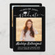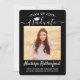 Compartilhe a alegria de um segundo grau ou formandos com estes anúncios personalizados de 2 fotos em preto, branco e prata. (DICA DE IMAGEM: Uma maneira fácil de centralizar uma imagem exatamente como você deseja é recortá-la antes de carregá-la no site do Zazzle.) Este modelo inclui o nome do formando, o ano de aula e a escola, e é simples de personalizar com qualquer texto de sua escolha, como detalhes do convite de festas, nomes de pais, honras especiais, título do grau, citação de inspiração favorita, informações de contato do formando, planos educacionais futuros ou nova posição de emprego. Se houver algum texto não desejado, simplesmente exclua-o. Design apresenta um fundo preto, boné de conselho de argamassa de aço inoxidável esfregado, caligrafia de script manuscrita, tipografia moderna minimalista e duas fotos de sua escolha, como fotos de mais velho ou imagens da cerimônia inicial. Por favor, note que prata é cor impressa, não é folha metálica. Estas elegantes cartas de graduação são uma maneira moderna e chique de compartilhar sua celebração especial com a família e os amigos. Parabéns ao formando!