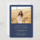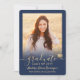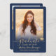 Compartilhe a alegria de um segundo grau ou formandos com estes anúncios de azul e ouro personalizados de marinho de 2 fotos. Todas as imagens e textos são simples de personalizar. (DICA DE IMAGEM: Uma maneira fácil de centralizar uma foto exatamente como você deseja é recortá-la antes de carregá-la no site do Zazzle.) Este modelo é simples de personalizar com quaisquer detalhes de sua escolha, como informações sobre convites de festas, nomes de pais, honras especiais, título de grau, citação inspiracional favorita, informações de contato do formando, planos educacionais futuros ou nova posição de emprego. Se houver algum texto não desejado, simplesmente exclua-o. Design apresenta um falso boné de conselho de folha de ouro, caligrafia de escrita manual, tipografia moderna minimalista e duas fotos da sua escolha, como fotos de mais velho ou imagens da cerimônia de início. Estas elegantes cartas de graduação são uma maneira moderna e chique de compartilhar sua celebração especial com a família e os amigos. Parabéns ao formando!