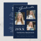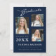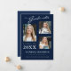 Cartões modernos de anúncio de graduação de fotos. Esse design personalizado combina um script de estilo caligráfico e manuscrito com o texto moderno da moda em branco e cinza em tons na moda de azul marinho. A parte traseira do design oferece campos de texto personalizáveis para seu lançamento, informações sobre formandos e planos futuros. Para ver mais itens como este, visite minha loja aqui em "www.Zazzle.com/LakeViewCardCo". Obrigados