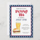 Vermelho branco e azul, 4 de julho, convite para CHURRASCO de quintal no quintal, com hambúrguer pintado à mão e ilustração de cerveja.