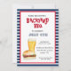Vermelho branco e azul, 4 de julho, convite para CHURRASCO de quintal no quintal, com hambúrguer pintado à mão e ilustração de cerveja.