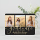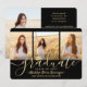 Compartilhe a alegria de um segundo grau ou formandos com anúncios personalizados de 4 colagens de fotos em preto e ouro descarregáveis. As imagens e todos os textos neste modelo digital são simples de personalizar com quaisquer detalhes de sua escolha, como informações de convite de festas, nomes de pais, honras especiais, título de grau, citação inspiracional favorita, informações de contato do formando ou planos para o futuro. (DICA DE IMAGEM: Uma maneira fácil de centralizar uma foto exatamente como você deseja é recortá-la antes de carregá-la no site do Zazzle.) O design apresenta um boné de conselho de folha falsa, tipografia moderna, caligrafia com script de tendências e quatro fotos de sua escolha, como fotos de mais velho ou imagens da cerimônia de início. Observe que o ouro é impresso a cor, não a folha metálica. Estes cartões de anúncio de na moda são uma maneira elegante de compartilhar uma celebração especial de dia com a família e os amigos. Parabéns ao formando!
