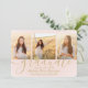 Compartilhe a alegria de um segundo grau ou formandos com anúncios personalizados de 4 fotos, cor-de-rosa-claro e ouro, descarregáveis. As imagens e todos os textos deste modelo digital são simples de personalizar com quaisquer detalhes de sua escolha, como informações sobre convites de festas, nomes de pais, honras especiais, título de grau, citação inspiracional favorita, informações de contato do formando ou planos para o futuro. (DICA DE IMAGEM: Uma maneira fácil de centralizar uma foto exatamente como você deseja é recortá-la antes de carregá-la no site do Zazzle.) O design de cor e ouro apresenta um fundo cor-de-rosa, boné de conselho de argamassa, tipografia moderna, caligrafia com script de tendências e quatro fotos de sua escolha, como fotos de mais velho ou imagens da cerimônia de início. Observe que o ouro é impresso a cor, não a folha metálica. Estes cartões de anúncio de na moda são uma maneira elegante de compartilhar uma celebração especial de dia com a família e os amigos. Parabéns ao formando!