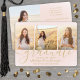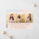 Compartilhe a alegria de um segundo grau ou formandos com estes anúncios de cor-de-rosa e ouro personalizados com colagem de 4 fotos. Todas as imagens e textos são simples de personalizar. (DICA DE IMAGEM: Uma maneira fácil de centralizar uma foto exatamente como você deseja é recortá-la antes de carregá-la no site do Zazzle.) Este modelo pode ser personalizado com quaisquer detalhes de sua escolha, como informações sobre convites de festas, nomes de pais, honras especiais, título de grau, citação inspiracional favorita, informações de contato do formando, planos educacionais futuros ou nova posição de emprego. Design apresenta um bonito fundo cor-de-rosa, boné falso de morteiro de folha de alumínio, caligrafia de script, tipografia moderna minimalista e quatro fotos de sua escolha, como fotos de mais velho ou imagens da cerimônia de início. Observe que o ouro é impresso a cor, não a folha metálica. Estas elegantes cartas de graduação são uma maneira moderna e chique de compartilhar sua celebração especial com a família e os amigos. Parabéns ao formando!