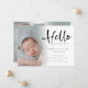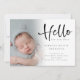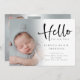 6 Foto: Bebê Garota Garota Olá. Envie a notícia alegre de sua nova chegada com este design de sobreposição de fotos, com um belo script set para Hello e o resto do texto é fácil de personalizar. Substitua as fotos de cada lado por suas próprias.