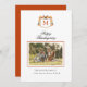Cartão com fotos de Ação de Graças personalizado com seu Monograma. O design apresenta uma crista de aquarela rustica com papa de perdiz e folhagem de queda.