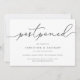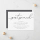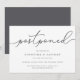 Precisa adiar seu casamento ou mudar a data? Informe os convidados com esses cartões de anúncio de adiamento de casamento simples e elegantes. O design cinza e branco apresenta "adiado" no topo em grafia caligráfica manuscrita, com seus nomes e nova data abaixo. Ajuste a redação e o nível de detalhe conforme necessário. Conforme mostrado, o texto de exemplo direciona os convidados ao site do seu casamento para informações adicionais.