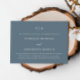 Azul simples e empoeirado muda o anúncio de adiamento do casamento. Este anúncio elegante é uma maneira chique de deixar os convidados saberem que sua data de casamento está sendo remarcada devido a circunstâncias imprevistas, e apresenta caligrafia moderna. A frente é um clássico azul empoeirado com texto branco, e a parte de trás é uma cinza macia.