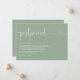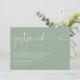 Mude a data! Anuncie seu adiamento de casamento para sua família e amigos com esta mudança no cartão de data. Ele apresenta uma escrita caprichosa e um fundo verde sábio. Personalize adicionando seus nomes e detalhes. Este cartão de adiamento do casamento também será perfeito como anúncio de elopeamento.