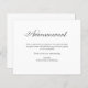 Este anúncio de orçamento simples e elegante, preto e branco é uma forma de pedir desculpas aos clientes ou amigos quando você precisa cancelar, reagendar ou adiar um evento ou casamento. O moderno roteiro preto manuscrito diz "Anúncio", enquanto o texto clássico adiciona um olhar formal e elegante. Use esses cartões de lançamento para qualquer cancelamento, adiamento ou reprogramação.