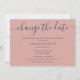 Anuncie o adiamento do seu casamento com este cartão minimalista azul marinho e rosa com uma fonte moderna de caligrafia.