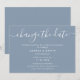 Comunique o adiamento do seu casamento com este cartão minimalista em tom azul, apresentando uma fonte de caligrafia moderna.