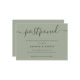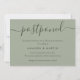 Anuncie o adiamento do seu casamento com este cartão minimalista em verde sálvia com uma fonte de letra moderna.