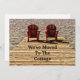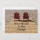 Câmaras de praia de Adirondack mudam de cartas. Burgundy russa marrom, vermelha, moderna, chic, tendências, única. Design de estilo de aposentadoria personalizado. Frase 'Fomos para a Cottage'. Personalize sua tipografia por tamanho de fonte, estilo, cor ou remova, se desejar. Imagem copyright Marg Seregelyi Fotografia.