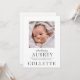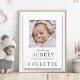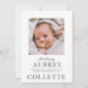 Um anúncio de nascimento de bebê moderno e elegante tipo clássico elegante cartão com fotos. Basta substituir as fotos existentes na frente e atrás por seu próprio retrato de bebê.