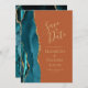 Este elegante e moderno salve o cartão de data apresenta uma cor azul lacrimejante agata borda cortada com falso brilho dourado. Personalize facilmente o texto dourado num fundo laranja queimado. Um design de metal e de ouro correspondentes aparece no verso.