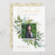 Este anúncio fotográfico foi feito com folha de aquarela e design de eucalipto com sotaques dourados, e pode ser personalizado com uma foto no centro! Personalize com suas informações de evento para criar um anúncio gentil que seus amigos e familiares irão amar.