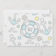É um menino! Compartilhe as boas notícias com este anúncio de nascimento do tubarão fofo. Vem em rosa suave, aqua e areia com um padrão náutico coordenado atrás.