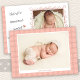 Cartão personalizado de anúncio de nascimento de fotografia, com a letra "há alguém doce que gostaríamos que conhecesse". Este design bonito apresenta um desenho fotográfico do arco-íris, um pequeno coração de amor e duas xadrezes de tom em tons de pêssego pincelado. O modelo de foto é configurado para que você adicione 2 de suas fotos favoritas que são exibidas em formato quadrado e paisagem. Você pode adicionar o nome do bebê e as estatísticas de natalidade na frente e, a foto na parte de trás tem um quadro instantâneo onde, você pode adicionar seus próprios nomes.