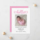 Rosas claro simples, mas atraentes, e anúncio de natalidade branca com um "olá" com corações, palavras de tipografia digital. Personalize o estilo e o tamanho da fonte, conforme necessário. Você pode mudar a cor rosa da palavra arte e o fundo no verso. Adicione mais fotos ou texto ao verso.