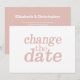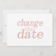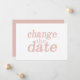 Tipografia moderna e minimalista ousada com design simples para passar a mensagem aos convidados. O texto cor-de-rosa na parte frontal pode ser personalizado para a cor desejada apenas alterando a cor do fundo. Uma maneira divertida e alegre de comunicar aos convidados a nova data do casamento.