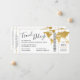 Mudança no anúncio de Data de um casamento de destino que parece um bilhete de avião com um design de mapa mundial elegante no tema do viagem de folha de ouro falso design. Todas as cores de texto e fundo são editáveis para que você possa criar seu próprio design usando este modelo para um cartão de embarque único que foi projetado com um casamento de destino ou um casamento do tema viagem ou uma celebração de renovação de votos em mente. Visite a coleção Destinos de Fita de Papel do Zazzle Designer para coordenar itens.