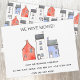 Apresentando uma pintura de aquarela original de casas, este anúncio é a maneira perfeita de deixar seus amigos e família saberem sobre sua grande jogada! O verso apresenta um padrão correspondente que continua o tema da aquarela, criando um design coeso e atraente. Altere o texto e os detalhes para personalizar. Arte original de Nic Squirrell.