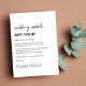 Alteração moderna mínima do anúncio do casamento. "atualização de casamento novo local" é escrito em uma mistura de um roteiro contemporâneo e tipografia ousada de tendências (você pode personalizar isso para "nova data", "casamento menor", etc). Personalize sua mensagem de alteração de planos, adicione seus nomes em um script semelhante a assinatura e adicione seu site de casamento no lado oposto ou deixe o vazio.