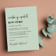 Mínima alteração moderna do anúncio do casamento verde do local com "atualização do casamento novo local" escrito em uma mistura de um roteiro contemporâneo e uma ousada tipografia de tendências (você pode personalizar isso para "nova data", "casamento menor" etc.). Personalize seu anúncio de mudança de planos, adicione seus nomes em um roteiro semelhante a assinatura e adicione seu site de casamento no lado oposto ou deixe o vazio.