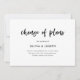 Esses cartões modernos e mínimos de reprogramação, cancelamento ou adiamento de casamento apresentam um roteiro casual preto que diz "mudança de planos" em um fundo branco. Se você tem que mudar ou cancelar a data do seu casamento ou qualquer outro evento especial, esta é uma maneira elegante e simples de fazer isso.