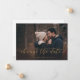Quando tiver de adiar o seu casamento, informe aos seus convidados com esta foto de na moda, mude o cartão de data com espaço para todos os detalhes (frente e verso). Apresentando um roteiro de caligrafia de na moda e um layout elegante com sua foto. Todas as cores são editáveis.
