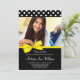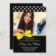 Convites amarelos do anúncio da graduação da foto das bolinhas do arco. Um teste padrão de bolinhas preto e branco à moda com uma ilustração amarela da fita. Aperfeiçoe para uma conclusão do ensino secundário, uns formandos ou uma festa de formatura! O design é ilustrações/gráficos impressos plano - FITA NAO REAL. Para resize e posicionar sua foto, clique sobre "PERSONALIZAM-NO" botão.