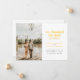 Se você tivesse mudado sua data de casamento, mas decidiu que não podia esperar para se casar e fugir, compartilhasse suas grandes notícias com os entes queridos com esse anúncio de elopeamento. Ele apresenta texto de cinza ouro amarelo e escuro com espaço para uma foto de solteiro, assim como detalhes sobre seu elopemento. A parte traseira do cartão tem espaço para uma mensagem pessoal.