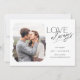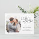 Um cartão de anúncio elegante e moderno, com solteiro vertical ou retrato, em um quadro único e pintado. "Love Always" aparece ao lado de um script escrito à mão, com seu anúncio personalizado (mostrado com "estamos engajados"), nomes e detalhes adicionais.