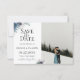 Flores e folhas de anêmona e espinho azul trendy e chiques, Cartão de Foto de Casamento Salvar a Data. Projetado para combinar com nossa Coleção Blue Thistle.