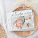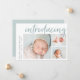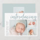 Um cartão de anúncio de nascimento elegante e moderno, com três fotos (um quadrado e dois horizontais), com "introdução" no topo, em letras, à tipografia de pincel. Personalize com o nome do seu bebê e as estatísticas de natalidade ao longo do lado esquerdo. Adicione uma mensagem pessoal ao verso, juntamente com uma foto adicional.