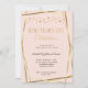 Convite de festas moderno manimalista de Ano Novo com a estrela dourada confetti e borda dourada em fundo rosa-claro.
